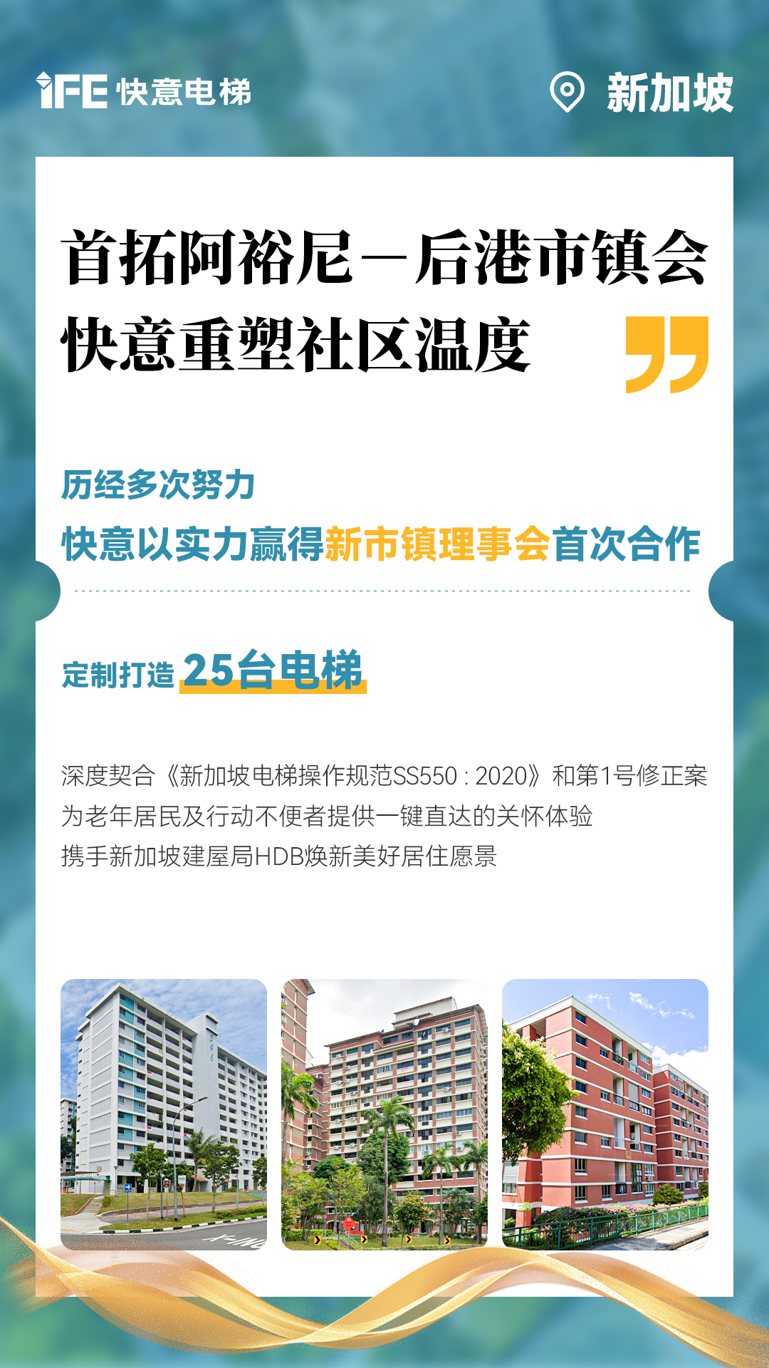 快意電梯攜手新加坡建屋局HDB,助力品質煥新!